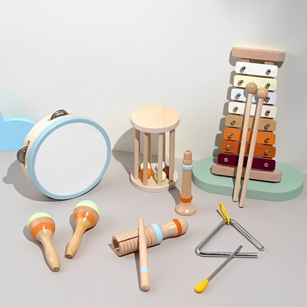 Imagine your little one creating their first melody or discovering the rhythm of a drumbeat. With the Montessori Musical Instruments Kit, the first steps into the world of music will be unforgettable. Designed for little hands and big imaginations, this 7-instrument set is the perfect way to combine fun, learning, and priceless family moments.